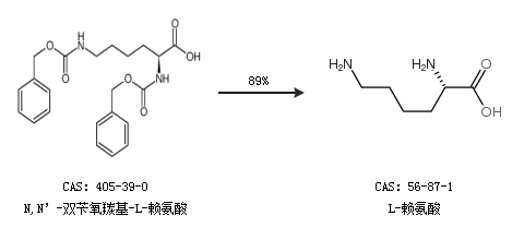 2.通過(guò)N,N’-雙芐氧羰基-L-賴氨酸合成L-賴氨酸,收率約89%;