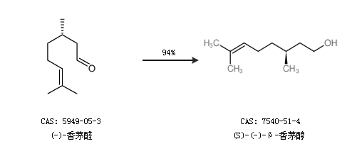 1.通過(guò)(-)-香茅醛合成(S)-(-)-β-香茅醇,收率約94%;
