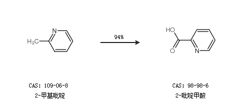2.通過2-甲基吡啶合成2-吡啶甲酸,收率約94%;