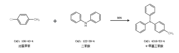 2.通過(guò)碘苯和對(duì)甲苯胺合成4-甲基三苯胺,收率約95%;
