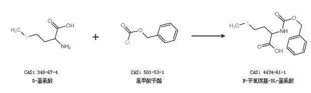 1.通過(guò)D-蛋氨酸和氯甲酸芐酯合成N-芐氧羰基-DL-蛋氨酸