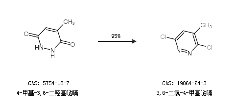 1.通過4-甲基-3,6-二羥基噠嗪合成3,6-二氯-4-甲基噠嗪,收率約95%;