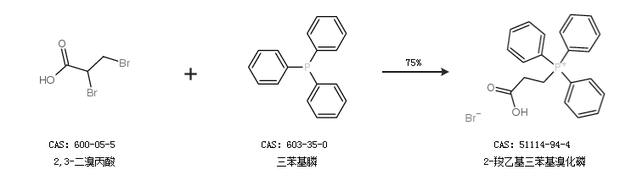 2.通過(guò)2,3-二溴丙酸和三苯基膦合成2-羧乙基三苯基溴化磷,收率約75%;