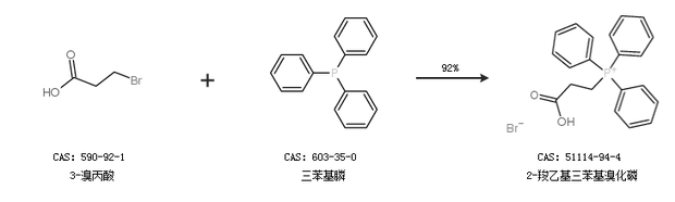 1.通過(guò)3-溴丙酸和三苯基膦合成2-羧乙基三苯基溴化磷,收率約92%;