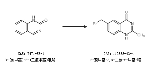 2.通過3-(氯甲基)-6-(三氟甲基)吡啶合成6-溴甲基-3,4-二氫-2-甲基-喹唑啉-4-酮