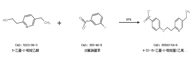 1.通過5-乙基-2-吡啶乙醇和對氟硝基苯合成4-[2-(5-乙基-2-吡啶基)乙氧基]硝基苯,收率約87%;