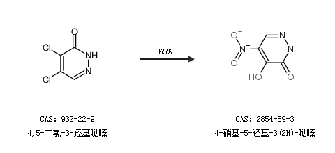 1.通過(guò)4,5-二氯-3-羥基噠嗪合成4-硝基-5-羥基-3(2H)-噠嗪,收率約65%;