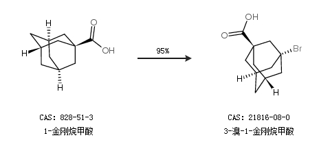 1.通過1-金剛烷甲酸合成3-溴-1-金剛烷甲酸,收率約95%;