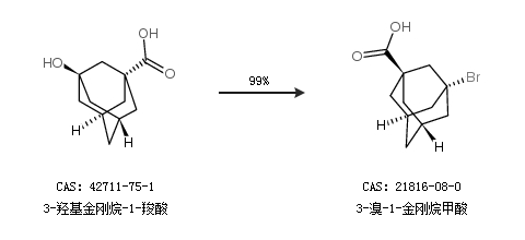 2.通過3-羥基金剛烷-1-羧酸合成3-溴-1-金剛烷甲酸,收率約99%;