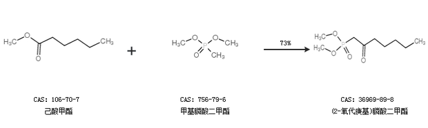 1.通過(guò)己酸甲酯和甲基膦酸二甲酯合成(2-氧代庚基)膦酸二甲酯,收率約73%;