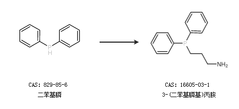 2.通過(guò)3-氯丙胺鹽酸鹽和二苯基膦合成3-(二苯基膦基)丙胺,收率約40%;