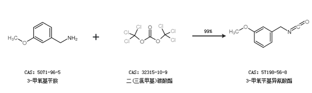 1.通過(guò)3-甲氧基芐胺和二(三氯甲基)碳酸酯合成3-甲氧芐基異氰酸酯,收率約99%;