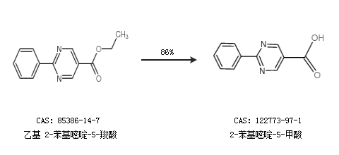 2.通過乙基 2-苯基嘧啶-5-羧酸合成2-苯基嘧啶-5-甲酸,收率約86%;