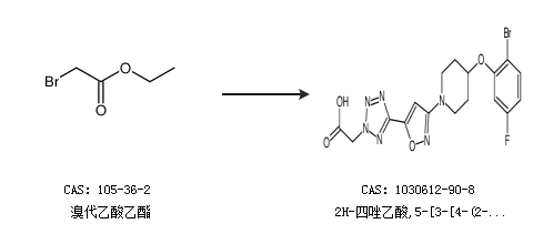 1.通過溴代乙酸乙酯合成2H-四唑乙酸,5-[3-[4-(2-溴-5-氟苯氧基)-1-哌啶基]-5-異惡唑]-