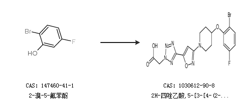 2.通過2-溴-5-氟苯酚合成2H-四唑乙酸,5-[3-[4-(2-溴-5-氟苯氧基)-1-哌啶基]-5-異惡唑]-