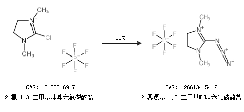 1.通過(guò)2-氯-1,3-二甲基咪唑六氟磷酸鹽合成2-疊氮基-1,3-二甲基咪唑六氟磷酸鹽,收率約99%;