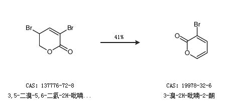 1.通過(guò)3,5-二溴-5,6-二氫-2H-吡喃-2-酮合成3-溴-2H-吡喃-2-酮,收率約77%;