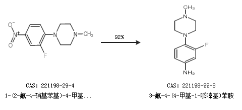 1.通過1-(2-氟-4-硝基苯基)-4-甲基哌嗪合成3-氟-4-(4-甲基-1-哌嗪基)苯胺,收率約92%;