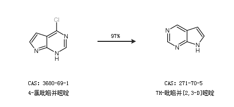 1.通過4-氯吡咯并嘧啶合成7H-吡咯并[2,3-D]嘧啶,收率約97%;
