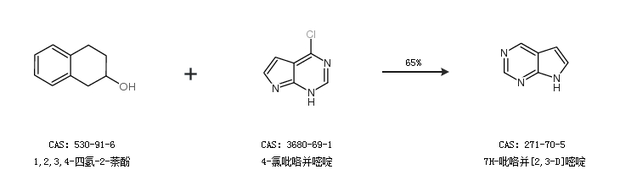 2.通過1,2,3,4-四氫-2-萘酚和4-氯吡咯并嘧啶合成7H-吡咯并[2,3-D]嘧啶,收率約65%;