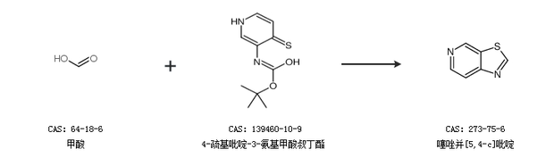 2.通過甲酸和4-疏基吡啶-3-氨基甲酸叔丁酯合成噻唑并[5,4-c]吡啶