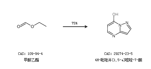 2.通過(guò)甲酸乙酯合成4H-吡唑并[1,5-a]嘧啶-7-酮,收率約75%;