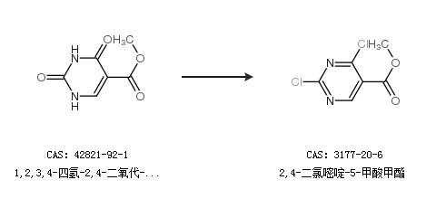 2.通過1,2,3,4-四氫-2,4-二氧代-5-嘧啶羧酸甲酯合成2,4-二氯嘧啶-5-甲酸甲酯