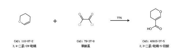 1.通過3,4-二氫-2H-吡喃和草酰氯合成2,3-二氫-吡喃-5-羧酸,收率約77%;