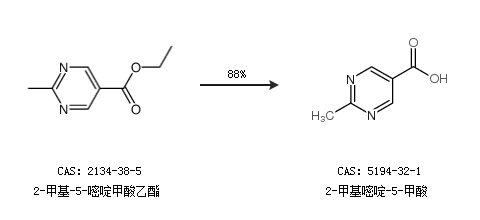 1.通過2-甲基-5-嘧啶甲酸乙酯合成2-甲基嘧啶-5-甲酸,收率約88%;