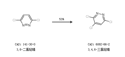 1.通過3,6-二氯噠嗪合成3,4,6-三氯噠嗪,收率約53%;