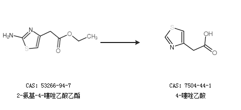 2.通過2-氨基-4-噻唑乙酸乙酯合成4-噻唑乙酸