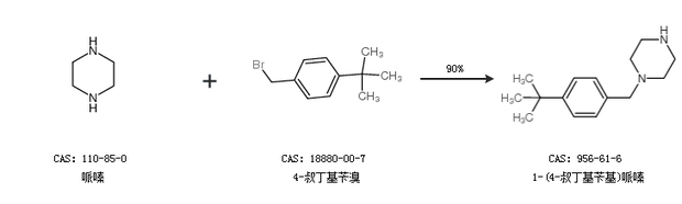 1.通過哌嗪和4-叔丁基芐溴合成1-(4-叔丁基芐基)哌嗪,收率約90%;