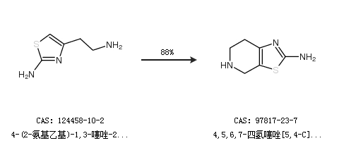 1.通過4-(2-氨基乙基)-1,3-噻唑-2-胺合成4,5,6,7-四氫噻唑[5,4-C]吡啶-2-胺,收率約88%;