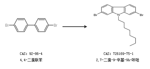 2.通過4,4-二溴聯(lián)苯合成2,7-二溴-9-辛基-9h-咔唑
