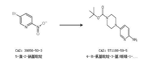 2.通過(guò)5-溴-2-硝基吡啶合成4-(6-氨基吡啶-3-基)哌嗪-1-羧酸叔丁酯