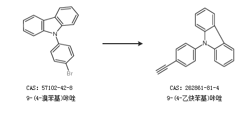 1.通過9-(4-溴苯基)咔唑合成9-(4-乙炔苯基)咔唑