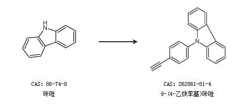 2.通過咔唑合成9-(4-乙炔苯基)咔唑