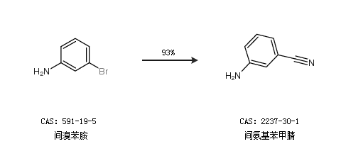 2.通過間溴苯胺合成間氨基苯甲腈,收率約93%;