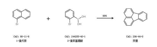 1.通過1-溴代萘和2-溴苯基硼酸合成熒蒽,收率約88%;