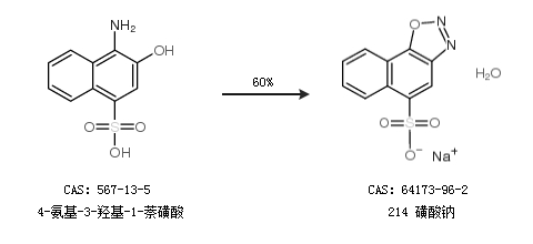 1.通過4-氨基-3-羥基-1-萘磺酸合成214 磺酸鈉,收率約60%;