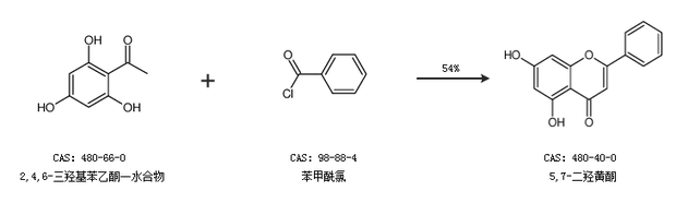 2.通過2,4,6-三羥基苯乙酮一水合物和苯甲酰氯合成5,7-二羥黃酮,收率約54%;