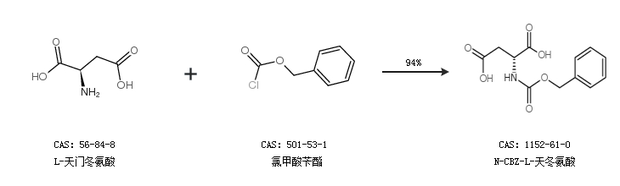 1.通過L-天門冬氨酸和氯甲酸芐酯合成N-CBZ-L-天冬氨酸,收率約94%;