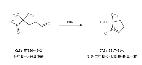 1.通過4-甲基-4-硝基戊醛合成5,5-二甲基-1-吡咯啉-N-氧化物,收率約60%;