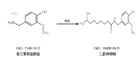 1.通過香蘭素胺鹽酸鹽合成二氫辣椒堿,收率約82%;
