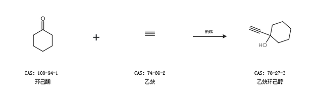 2.通過(guò)環(huán)己酮和乙炔合成乙炔環(huán)己醇,收率約99%;