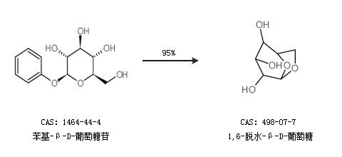 1.通過(guò)苯基-β-D-葡萄糖苷合成1,6-脫水-β-D-葡萄糖,收率約95%;