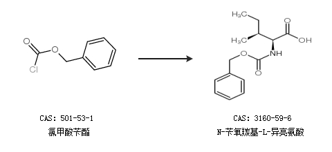 1.通過L-異亮氨酸和氯甲酸芐酯合成N-芐氧羰基-L-異亮氨酸,收率約95%;
