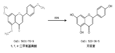 2.通過5,7,4-三甲氧基黃酮合成芹菜素,收率約89%;