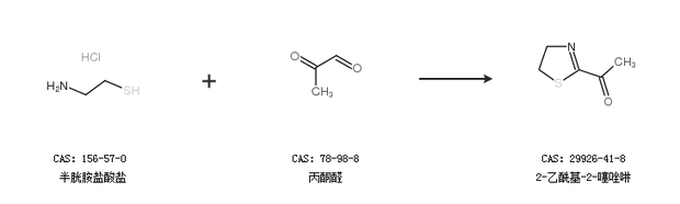1.通過(guò)半胱胺鹽酸鹽和丙酮醛合成2-乙酰基-2-噻唑啉