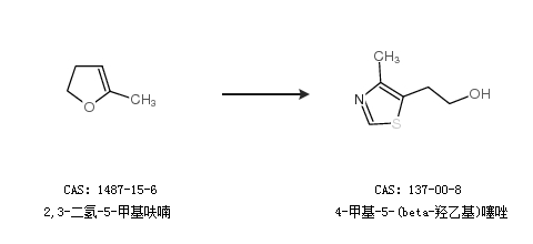 2.通過2,3-二氫-5-甲基呋喃合成4-甲基-5-(beta-羥乙基)噻唑